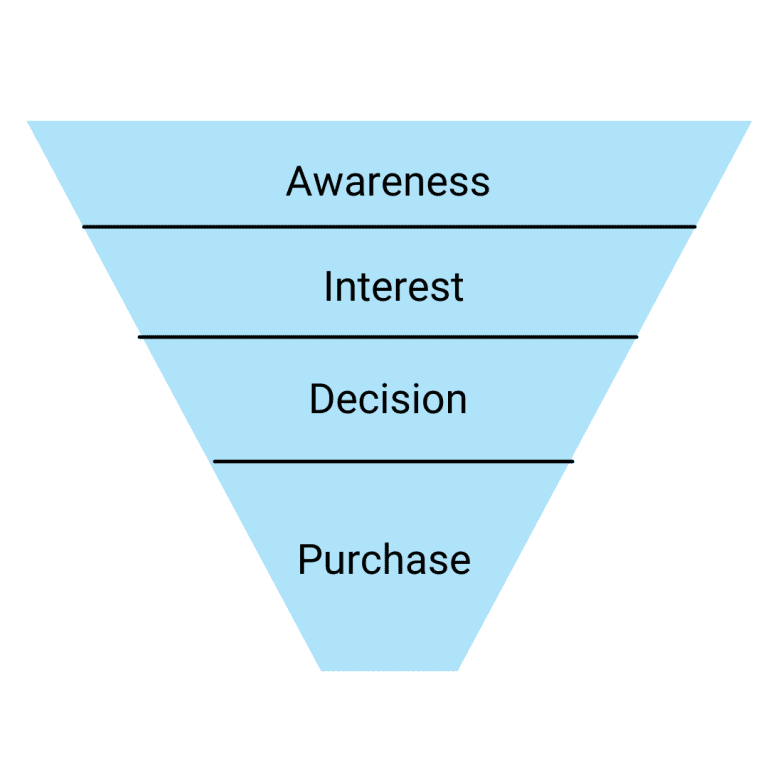 A sales funnel represents a buying journey from awareness, to interest, to decision, to purchase. Every sale goes along these lines, even minor ones.